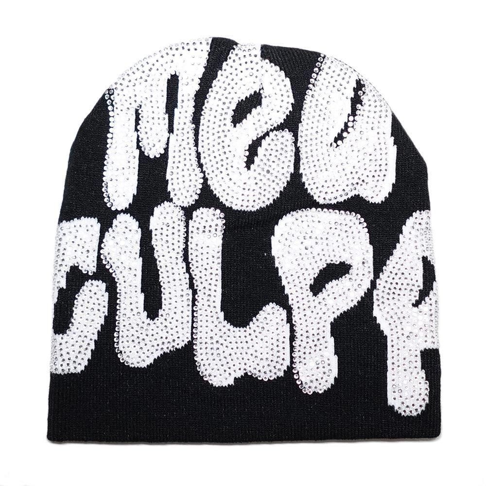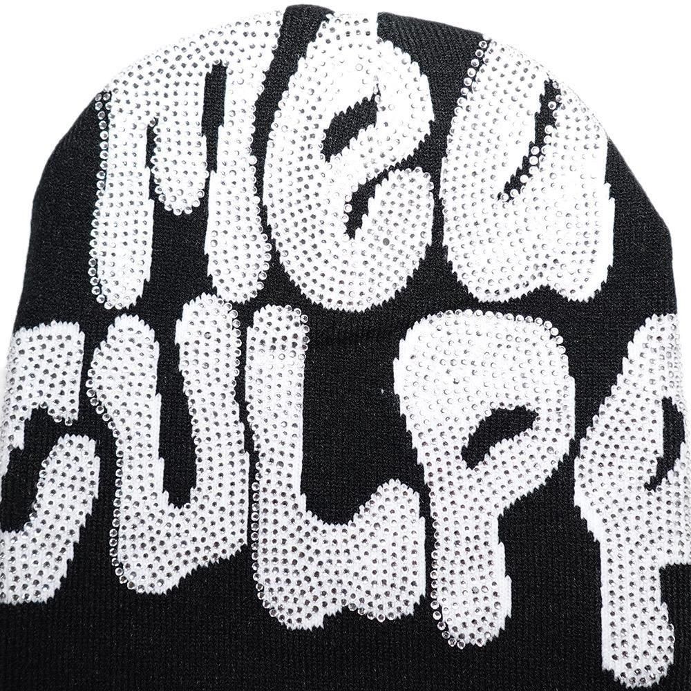Rhinestone Skullcap Beanie “Mea Culpa” / Black x White