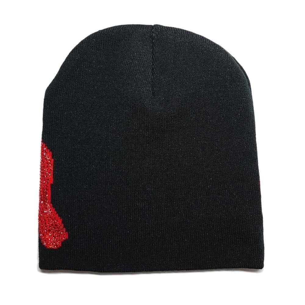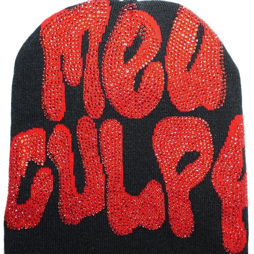 Rhinestone Skullcap Beanie “Mea Culpa” / Black x Red