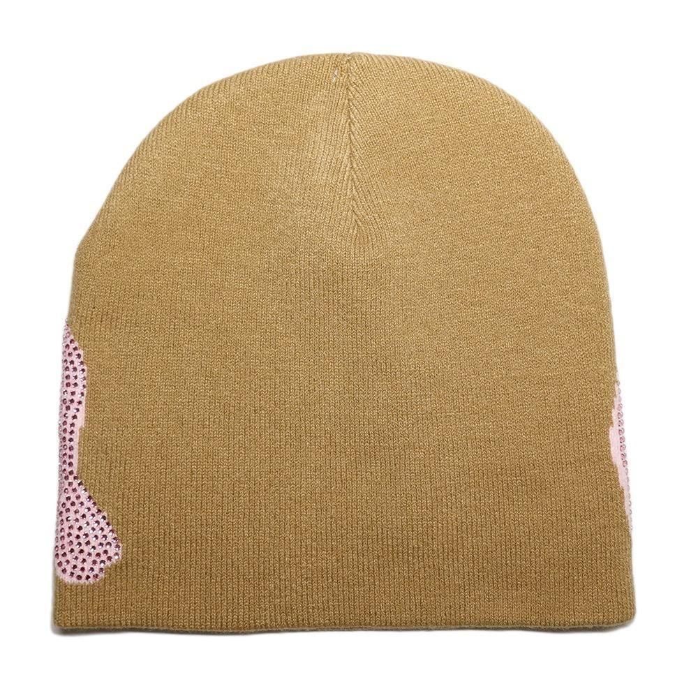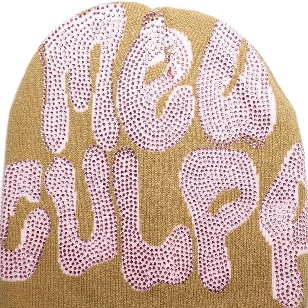 Rhinestone Skullcap Beanie “Mea Culpa” / Beige x Pink