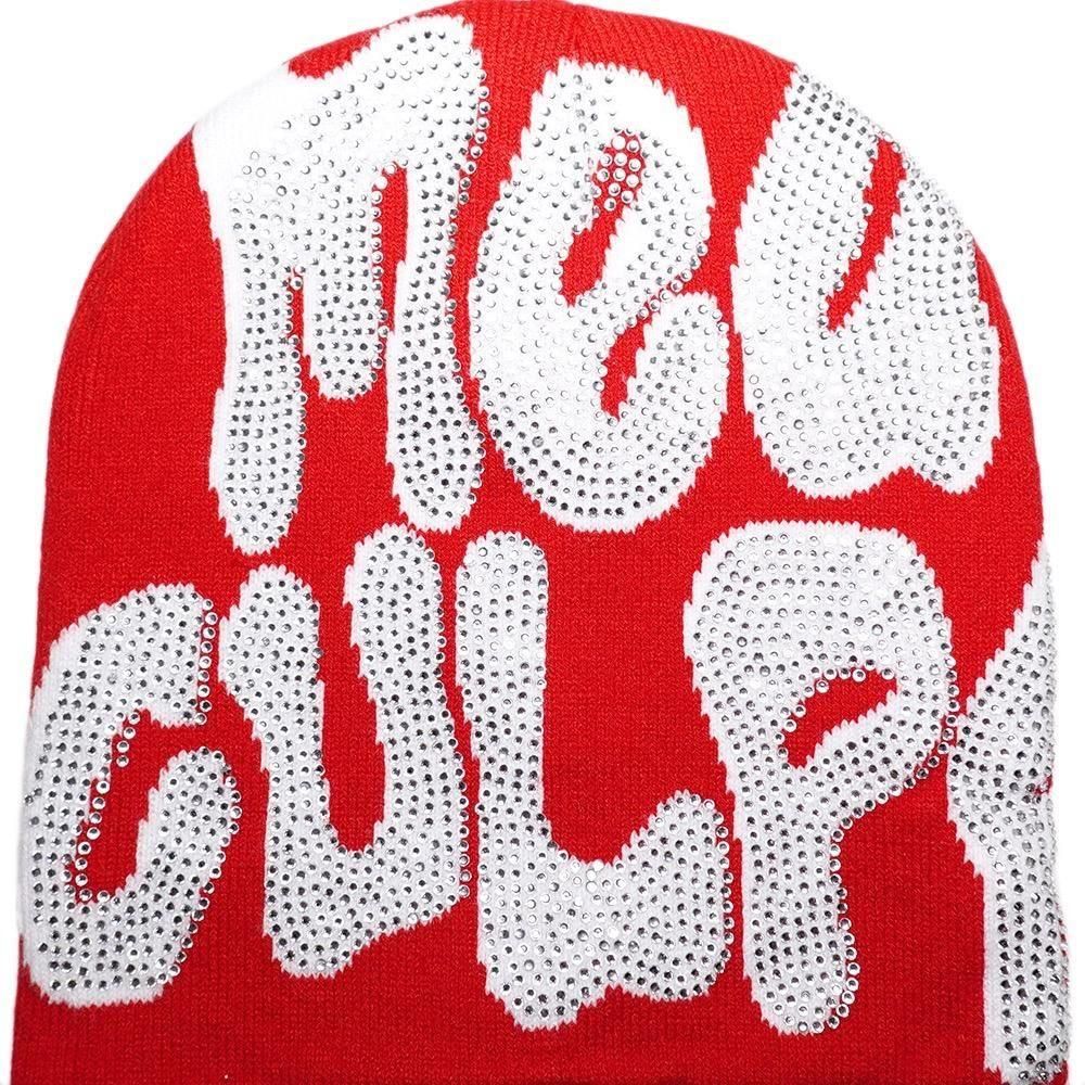 Rhinestone Skullcap Beanie “Mea Culpa” / Red