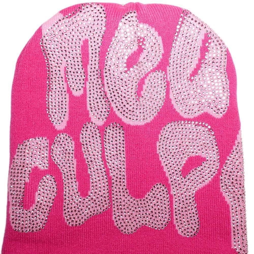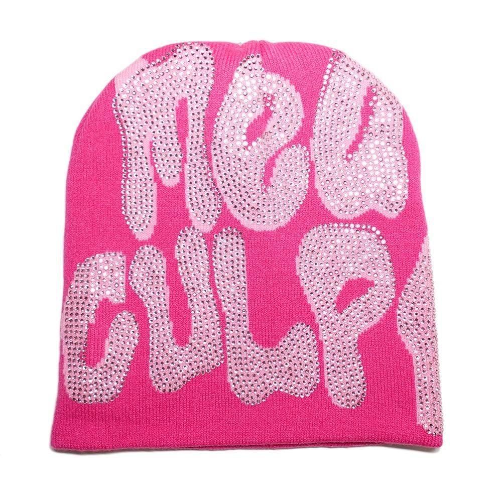 Rhinestone Skullcap Beanie “Mea Culpa” / Hot Pink