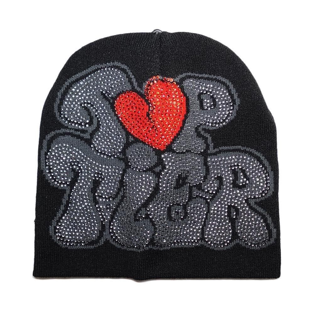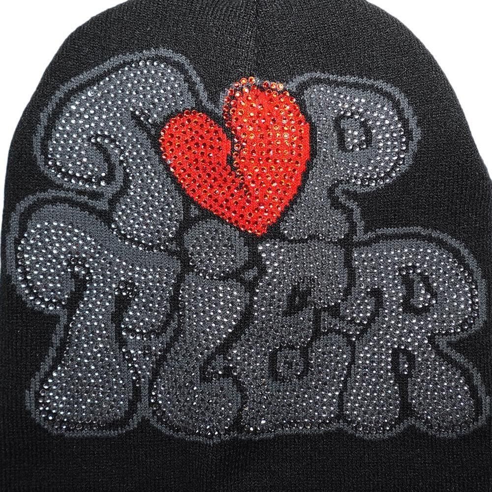 Rhinestone Skullcap Beanie “Top Tier” / Black x Grey x Red