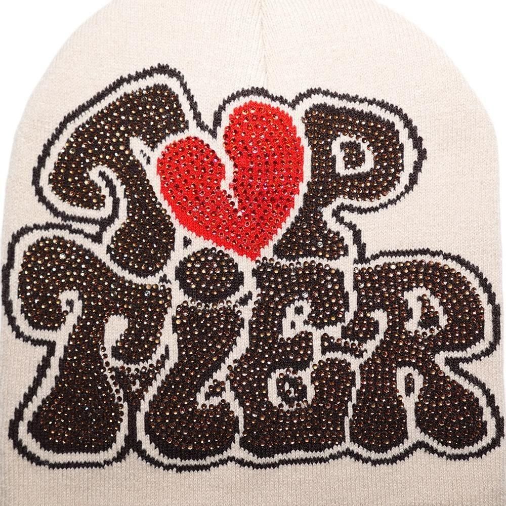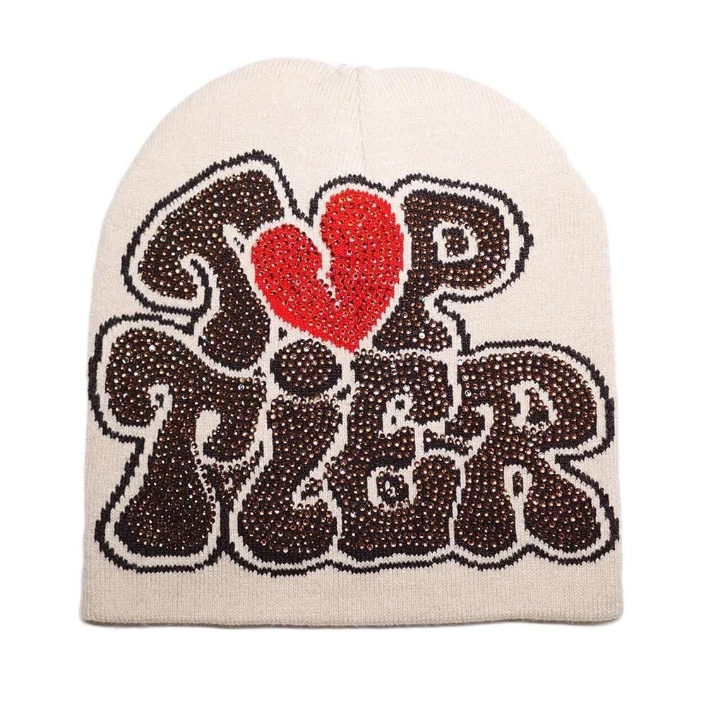 Rhinestone Skullcap Beanie “Top Tier” / Sand x Brown x Red