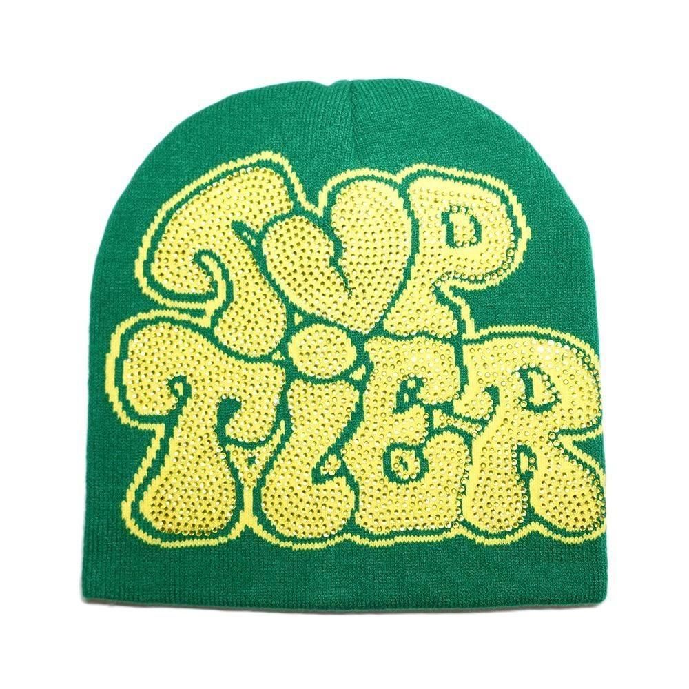 Rhinestone Skullcap Beanie “Top Tier” / Green x Yellow