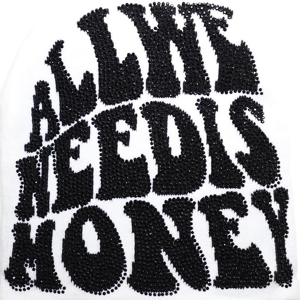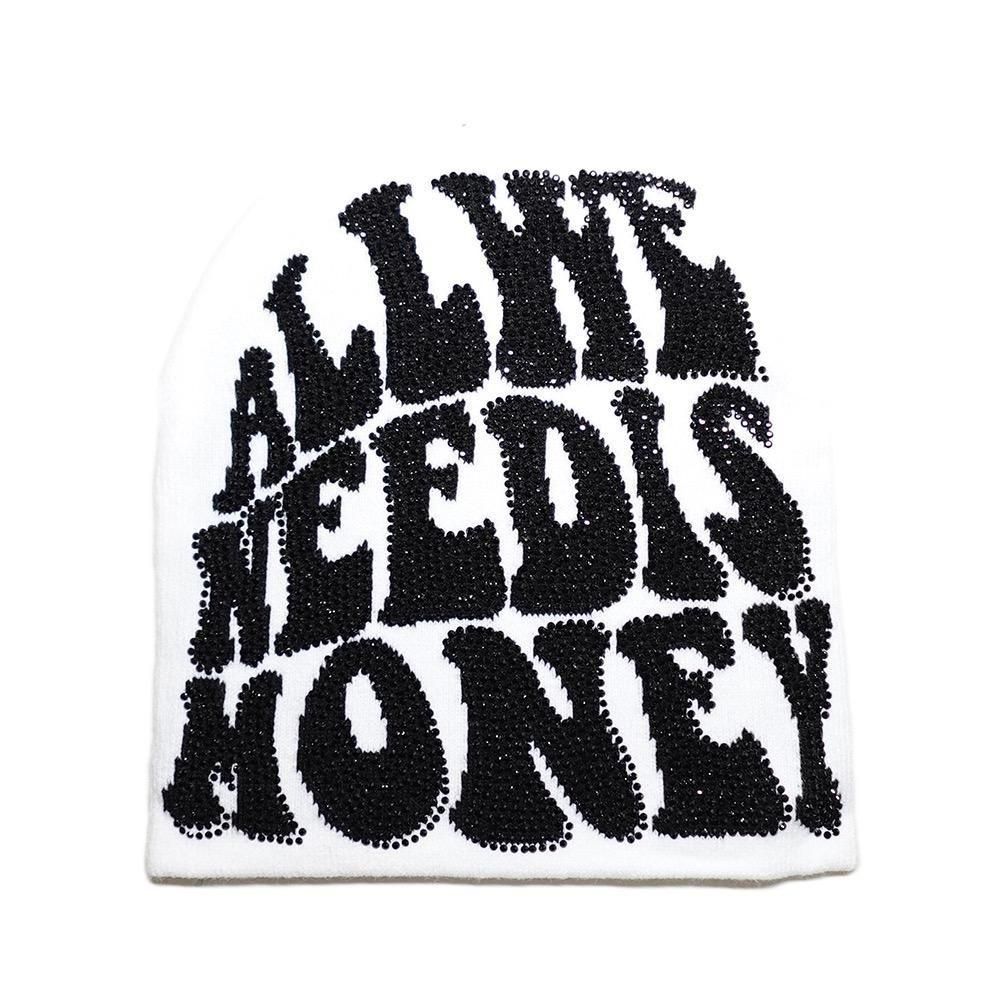 Rhinestone Skullcap Beanie “All We Need Is Money” / White x Black