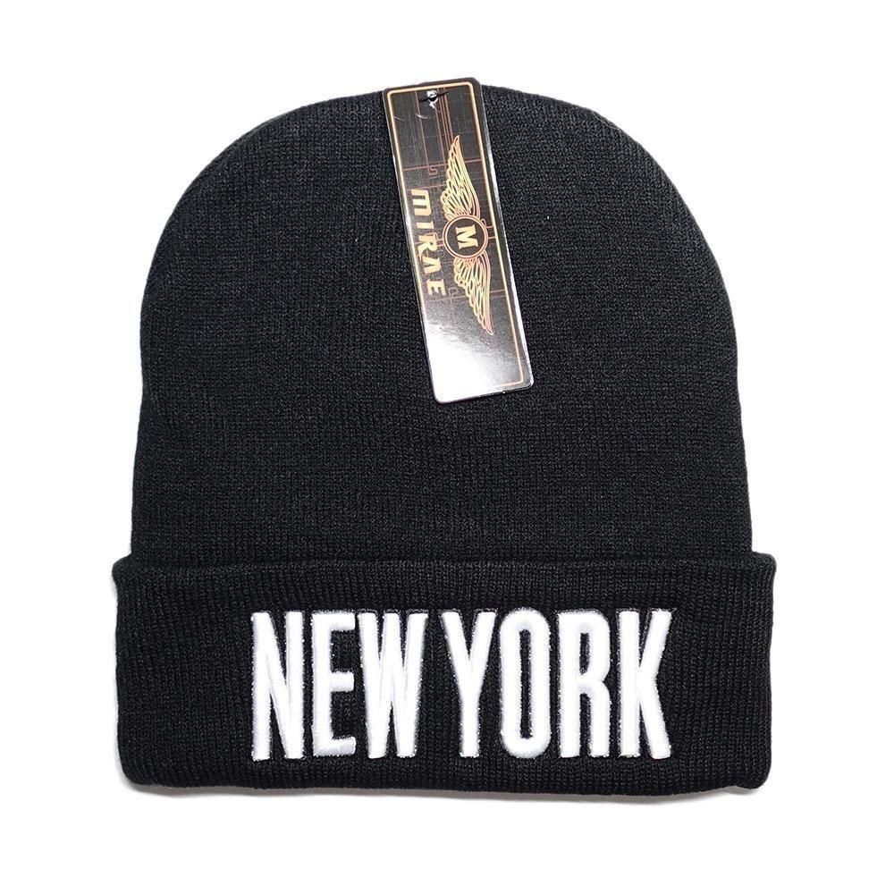 Mirae Acrylic Beanie Cap “New York” / Black