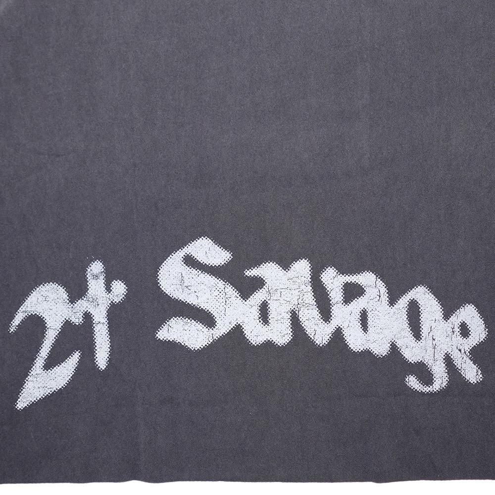 フロントに配された21サヴェージのプリント、バック裾のロゴが目を惹く一枚です。